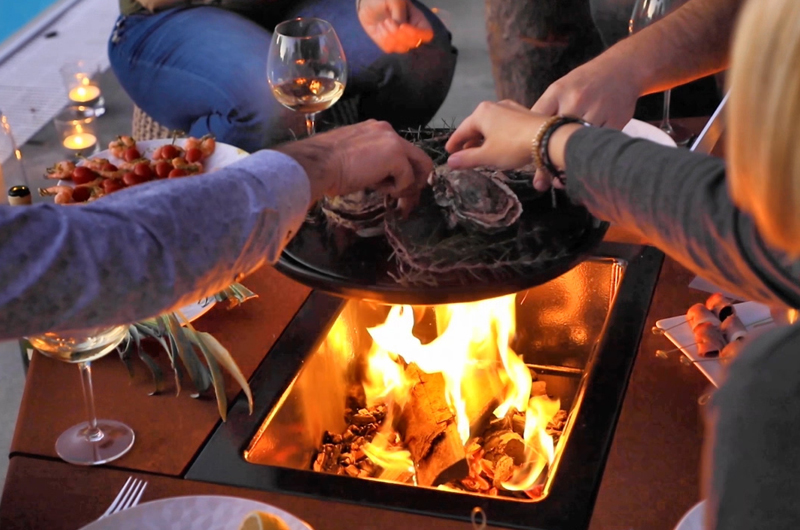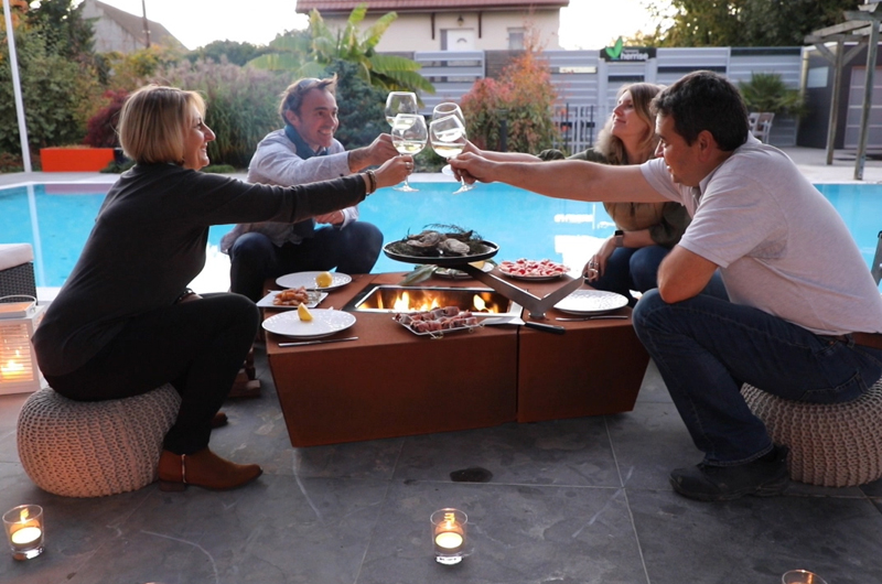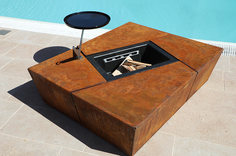 En format lounge, le braséro Augoust permet de s’attabler autour d’un feu de bois et d’une cuisine conviviale dans votre jardin ou sous votre pergola, de réaliser des apéritifs dînatoires au bord de votre piscine avec vos amis ou votre famille. Vous obtiendrez une cuisson savoureuse de vos viandes, poissons et légumes sans aucun risque grâce à son bras rotatif amovible en inox et son support à plancha en fonte. C’est un appareil de cuisson autant pratique que design et absolument unique en son genre. Son design intelligent offre des tiroirs pour y ranger des accessoires de cuisson ou des seaux à glaçons par exemple. Cendrier couvert, le braséro lounge se transforme simplement en une jolie table basse.